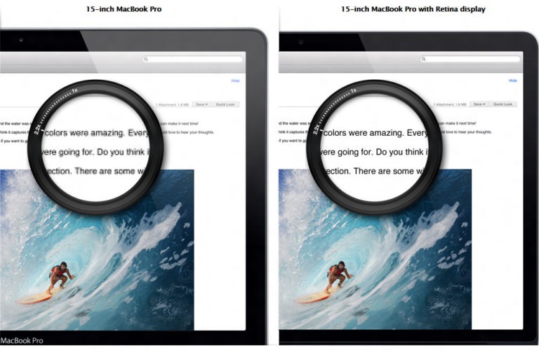 DP와 PT를 이해하시려면 먼저 ' Retina display '에 대한 이해가 있으셔야 합니다. Retina display란 2010년도에 애플에서 제시한 액정디스플레이 기술입니다. Retina display은 망점이 보이지 않는 고해상도의 디스플레이라는 뜻인데 망점이란 스크린에서 보이는 도트, 픽셀의 값입니다. 그러니 픽셀로 이루어진 웹상에서 픽셀이 보이지 않는다면 얼마나 해상도가 높은지 감이 오시나요? (사실 요즘 디스플레이들은 모두 픽셀이 전혀 안보이는 것이 당연하긴 하죠ㅎㅎ....) 아래의 이미지를 보시면 Retina display의 고해상도에 대한 감을 잡기 조금 쉬우실 것 같습니다.