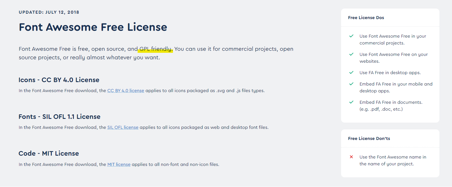 Fontawesome에서 만든 아이콘 사이트입니다. 무료로 사용할 수 있도록 명시해둔 아이콘들만 무료로 사용이 가능하고 그 외의 아이콘을 사용할 시에는 멤버십을 구매해야 합니다. 무료와 유료 아이콘 모두 활용 가능한 스타일 종류는 같지만 아이콘의 라인두께에서 조금 차이가 있습니다. 무료 아이콘은 가장 두꺼운 두께의 아이콘만 사용이 가능하고 나머지 두께는 사용이 불가능합니다. 라이센스는 GPL라이센스로 의무사항이 많아 엄격하나 그래서인지 많은 오픈소스가 채택하고 있는 라이센스입니다. 개인, 상업용 어떠한 목적으로도 사용이 가능하지만 해당 아이콘을 사용하여 만든 프로그램을 판매/배포시 제작한 소스코드 전체를 공개해야 합니다. 상업적 목적이 있고 경쟁력이 있는 프로그램이라면 조금 고려해봐야 할 것 같습니다.